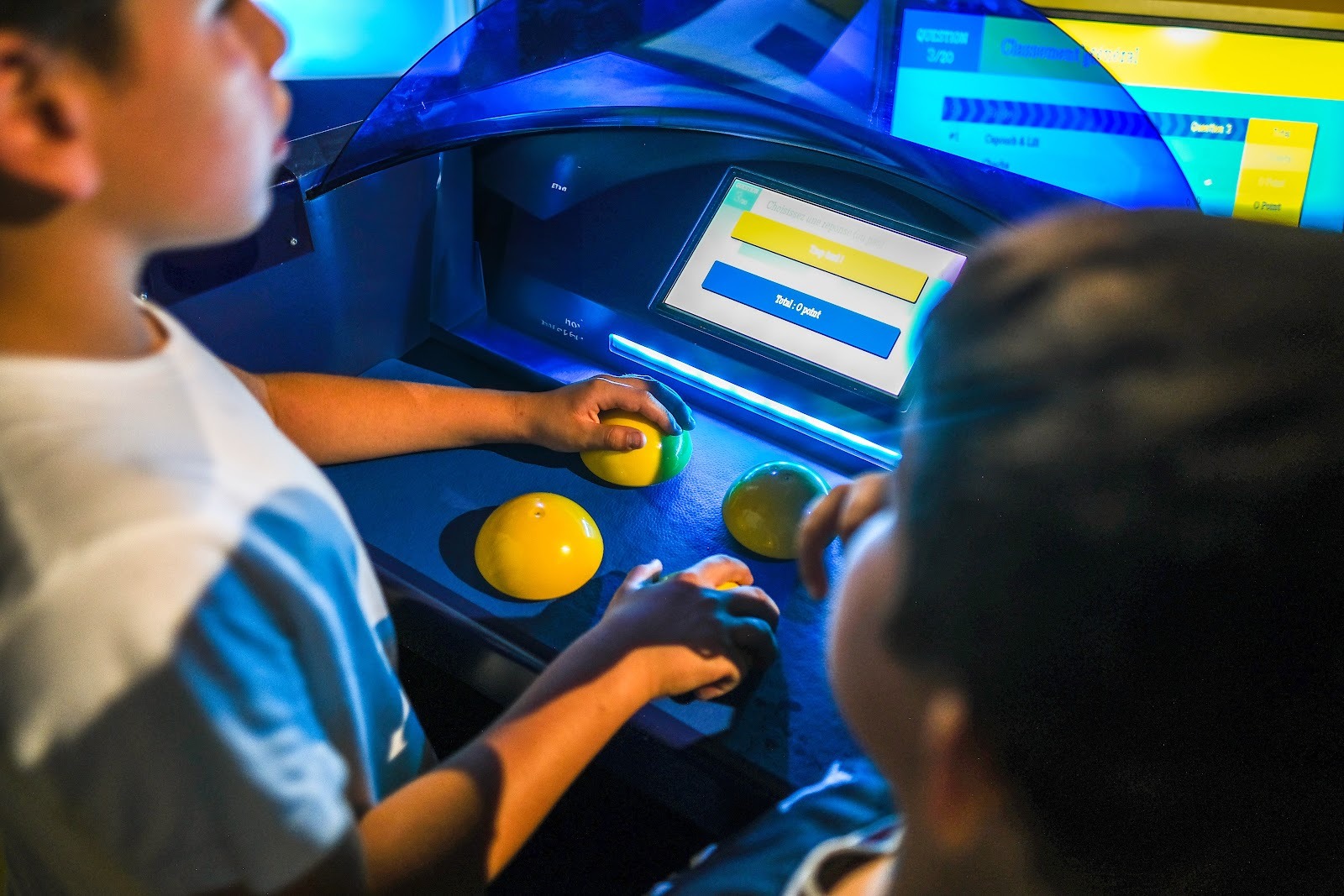 La magie de Quiz Room, c'est de recréer l'adrénaline d'un vrai jeu télévisé. Chaque enfant a son propre pupitre et son buzzer. Il ne suffit pas d'avoir la bonne réponse, il faut être le plus rapide ! Mais ce n'est pas tout. Pour rendre le jeu encore plus excitant, les enfants peuvent utiliser des jokers pour voler des points à leurs adversaires, bloquer un concurrent redoutable ou doubler leurs gains sur une question dont ils sont sûrs. Cette dimension stratégique ajoute une couche de fun incroyable et maintient le suspense jusqu'à la toute dernière seconde.