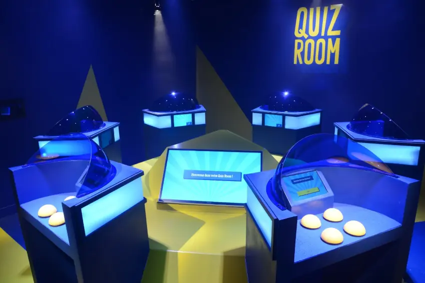 👉 Le concept : une salle transformée en plateau télé immersif, avec buzzers, ambiance lumineuse et musique digne d’un vrai jeu télé. Tu joues en équipe pendant 1h ou 1h30 et tu enchaînes des questions de culture générale, des blind tests, des défis et même des épreuves stratégiques.