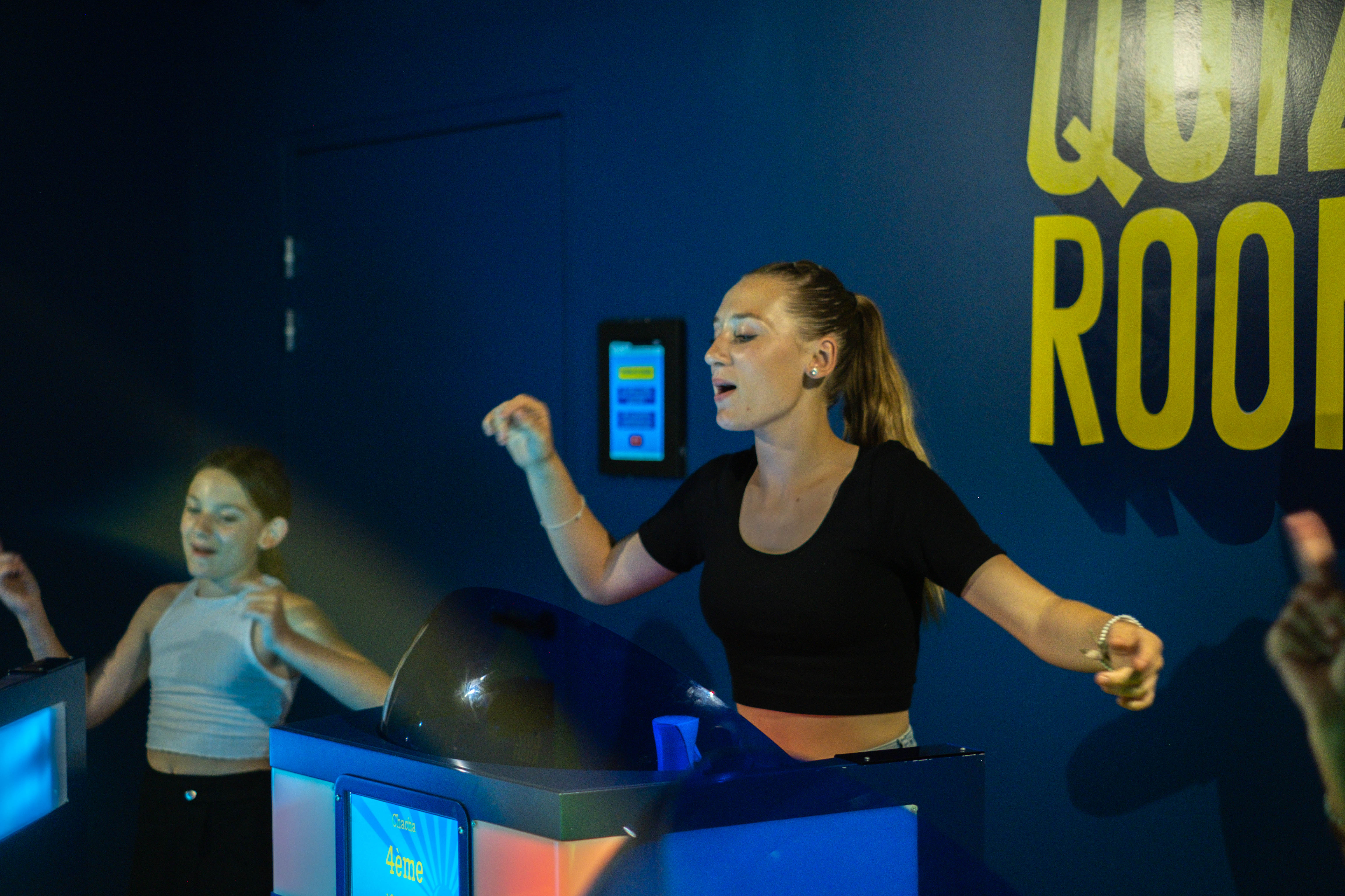 En équipes de deux ou trois, vous allez adorer vous affronter sur des questions variées et déjantées, tout en profitant d'une ambiance à la fois conviviale et compétitive. Quiz Room t'immerge complètement dans un décor de plateau TV plus réaliste que jamais. Spots, jingles, voix off, tout y est ! Il ne manque plus que Jean-Pierre Foucault, mais il avait piscine.