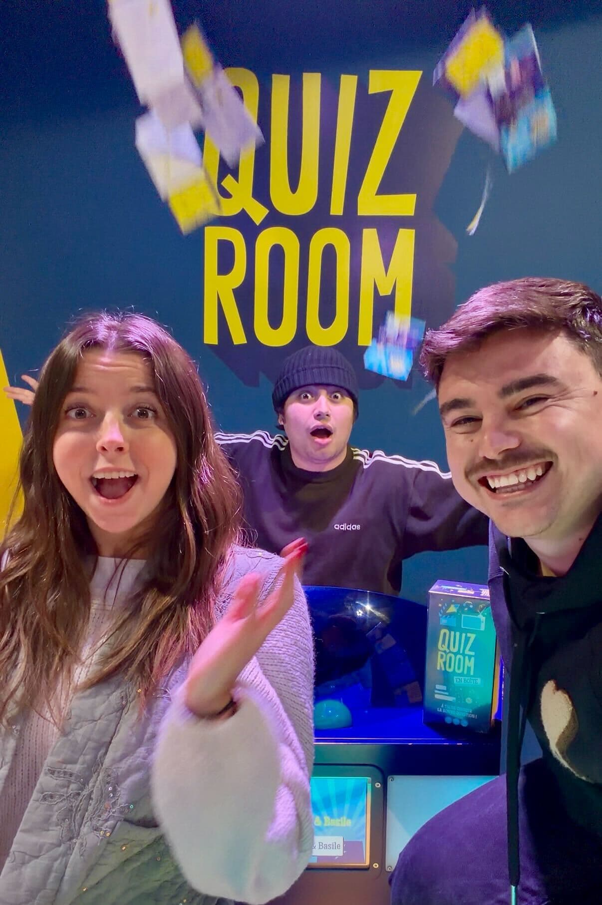 Les quiz sont de plus en plus répandus, vous pourrez retrouver de nombreux quiz disponibles sur internet, ou dans des jeux de société. Ce que vous retrouvez chez Quiz Room c’est un quiz immersif et ludique en présentiel. Pendant plus d’une heure, participez avec un groupe d’ami.e.s, en famille ou entre collègues, en pleine immersion dans une salle digne des plus beaux plateaux télé. Quiz Room est présent partout en France mais aussi à l'international : au Canada, au Royaume-Uni, en Belgique, en Espagne, en Suisse, en Australie et aux Émirats arabes unis.